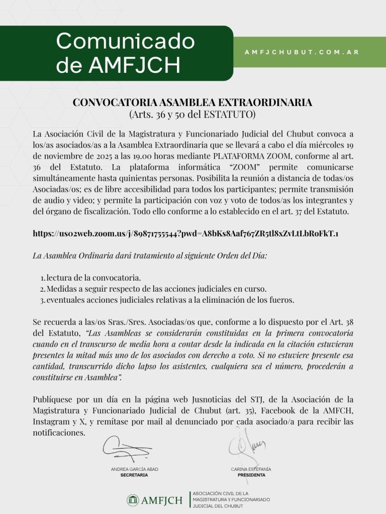 Comunicado de AMFJCH: CONVOCATORIA ASAMBLEA EXTRAORDINARIA